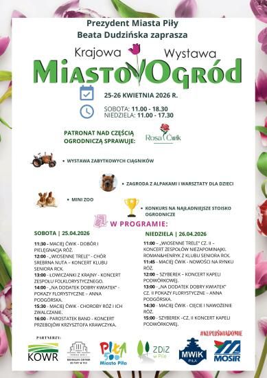 Prezydent Miasta Piły Beata Dudzińska zaprasza na Krajową Wystawę „Miasto Ogród”, która odbędzie się w dniach 25–26 kwietnia 2026 r.