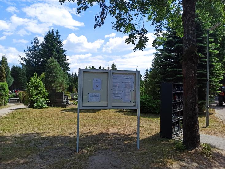 QR kod oraz adres strony można odnaleźć w nowo ustawionych gablotach informacyjnych tuż przy bramach na cmentarzu komunalnym. W tym miejscu zamieszczone są także inne wszelkie informacje, komunikaty i zarządzenia dotyczące cmentarza.