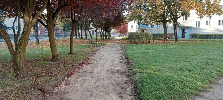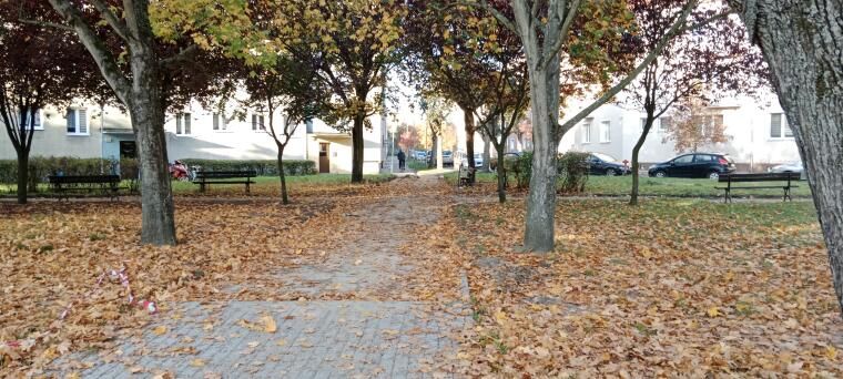 Jednocześnie informujemy, że równolegle trwają prace przy ul. Komuny Paryskiej, a więc po drugiej stronie skweru, polegające na modernizacji istniejącego chodnika.
